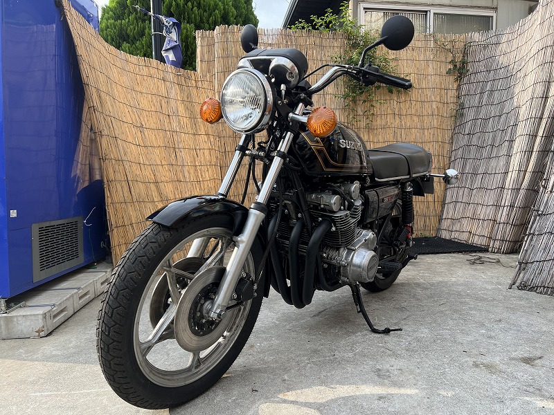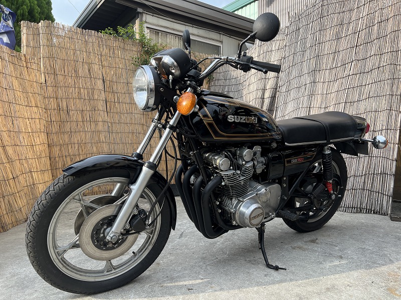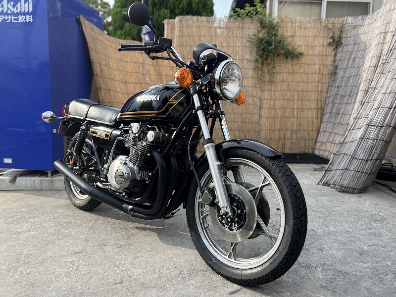 引き締まったカラーリング♪綺麗な外装とエンジンで渋い車両です!理想的なフォルムで各部品の曲線が美しいGS750です。外装のペイントも新しくエンジンフレームなども全体的に綺麗な車両です♪マービング集合ショートマフラーで空冷特有の乾いた感じの排気音が良い感じです。GS400との共用部品も多く丈夫な機関構造を持つ車体なので長く所有いただくにもお勧めできる車両です♪旧車となりますので納車整備ではオイル漏れ修理や電装系修復実施、キャブレターもOHセッティング見直し等、当店ではご安心してご検討いただけるよう修復費用、部品代も込々です!頭金0〜のオートローンも取り扱いございますお気軽に♪当社専属の整備士は二輪専属30年以上の整備経験者で国家二輪整備士有資格者です!