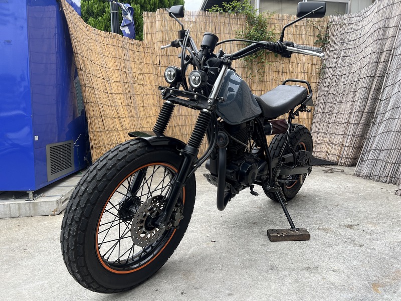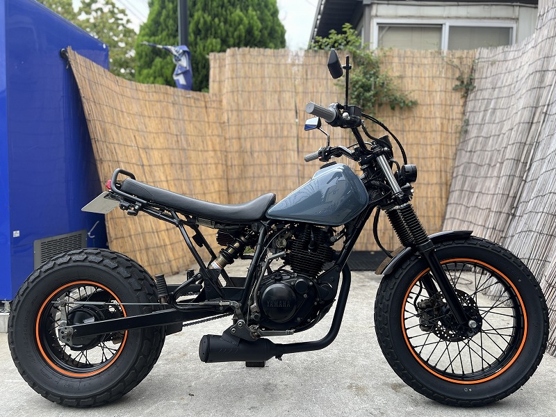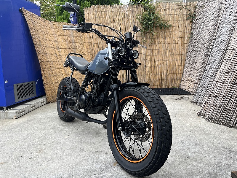 LED仕様やELメーター等でカスタムされたロンスイスカチューンなTW225です♪人気のカスタムスタイル入庫しました♪丈夫なTW225で全体的にクールな雰囲気にまとまっています。人気グレーの綺麗なペイントタンクでさりげなく落ち着いたカッコいい感じ♪ELメーターやダブルLEDヘッドライトも装備で走行時の気分もバッチリ。カスタム車でも入念な点検整備と試乗を行いましてご納車致しますのでご安心してご検討ください。頭金0〜のオートローンも取り扱いございますお気軽に♪当社専属の整備士は二輪専属30年以上の整備経験者で国家二輪整備士有資格者です!