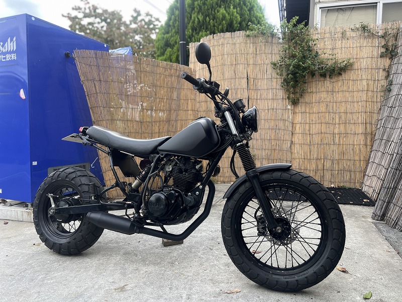 拘りのLED仕様やELメーター等でカスタムされたロンスイスカチューンなTW225です♪人気のカスタムスタイル入庫しました♪丈夫なTW225で全体的にクールな雰囲気にまとまっています。人気ブラックなペイントタンクでさりげなく落ち着いたカッコいい感じ♪社外メーターやLEDヘッドライト、LED灯火類も装備で走行時の気分もバッチリ。カスタム車でも入念な点検整備と試乗を行いましてご納車致しますのでご安心してご検討ください。頭金0〜のオートローンも取り扱いございますお気軽に♪当社専属の整備士は二輪専属30年以上の整備経験者で国家二輪整備士有資格者です!