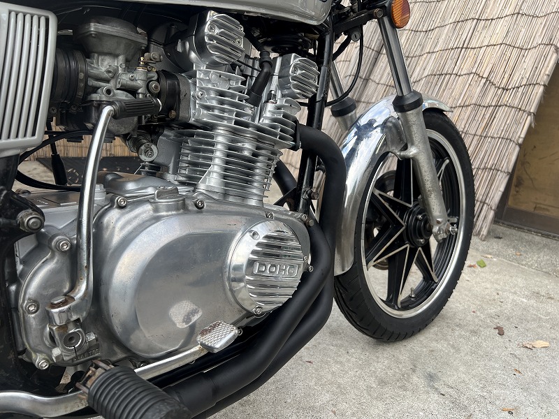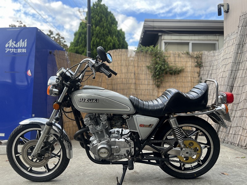 腰下までOH済みの輪童オリジナルデザインなLです♪エンジンパワフル450cc!国内新規3年ノーマルの風合いを残したデザインで綺麗にカスタムペイントされています♪カスタム段シートもオーダー製作の新品表皮になりますエンジンは腰下までOH後、シリンダーはワイセコピストンにて450ccにボアアップ♪低速からのトルクフルな乗り味でスプロケットは高速クルーズへセッティングしていますヘッド内部のバルブ回りやガイド、タペット等も新品打ち換えやシートカットすり合わせ処理を実施しています。GS400同等のエンジンで一味違ったスタイルのL、渋くて速い良好な車体を是非ご検討ください♪頭金0〜のオートローンも取り扱いございますお気軽に♪当社専属の整備士は二輪専属30年以上の国家二輪整備士有資格者です!